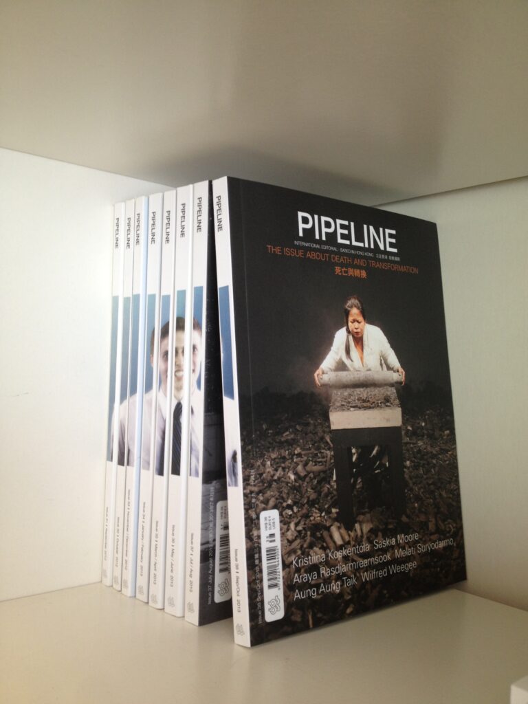 Pipeline was distributed in bookshops in Hong Kong, but also in Singapore, Beijing, Shanghai, Taipei, and in a handful of museum-type shops in Europe. It was also available internationally at art fairs, from Art Basel (Miami Beach, Basel, Hong Kong) to Artissima to Zona Maco; and by subscription. The Asia Art Archives in Hong Kong holds all issues of Pipeline, more info here.